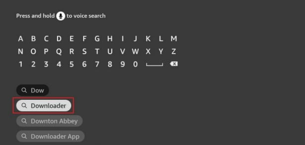 3. Type the name of the app (which is Downloader) Click the Downloader option when it is displayed in the search results Choose the Downloader icon on the following screen and download and install the app