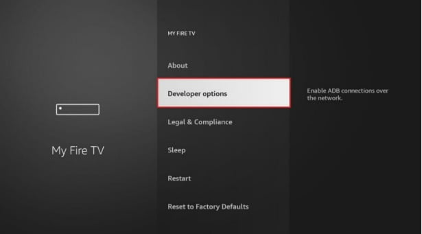 Note: If Developer Options doesn't show, navigate to the About tab and hit the button on the remote seven times on the first item to reveal the now-hidden Developer Options menu